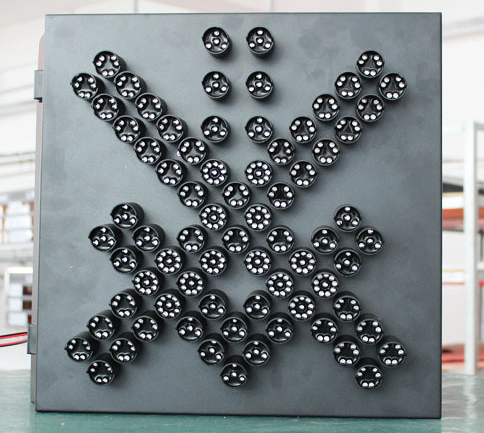產(chǎn)品組件:車(chē)道信號(hào)燈由燈芯、燈殼、遮陽(yáng)罩、配件等組成,燈色由紅、綠兩種組成.