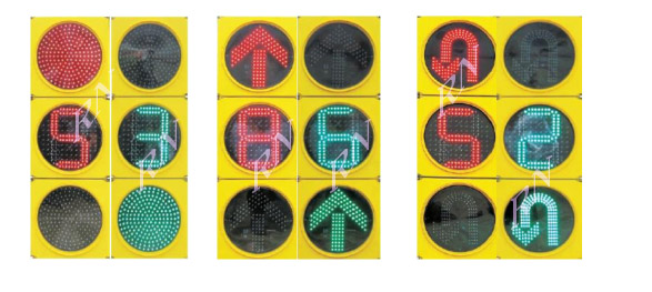 機(jī)動車信號燈包含:滿屏燈、箭頭燈、掉頭燈三種: